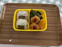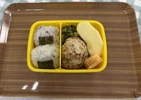 毎週水曜日はご家庭にお願いして主食のご飯をおにぎりにしてもらい、給食室でおかずを詰めてお弁当にして、ウキウキのランチタイムを過ごしています。天気が心地よい日は芝生の上でピクニック気分を楽しんでいます。