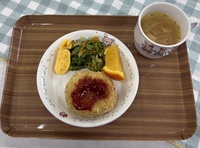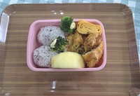 毎週水曜日はご家庭にお願いして主食のご飯をおにぎりにしてもらい、給食室でおかずを詰めてお弁当にして、ウキウキのランチタイムを過ごしています。天気が心地よい日は芝生の上でピクニック気分を楽しんでいます。